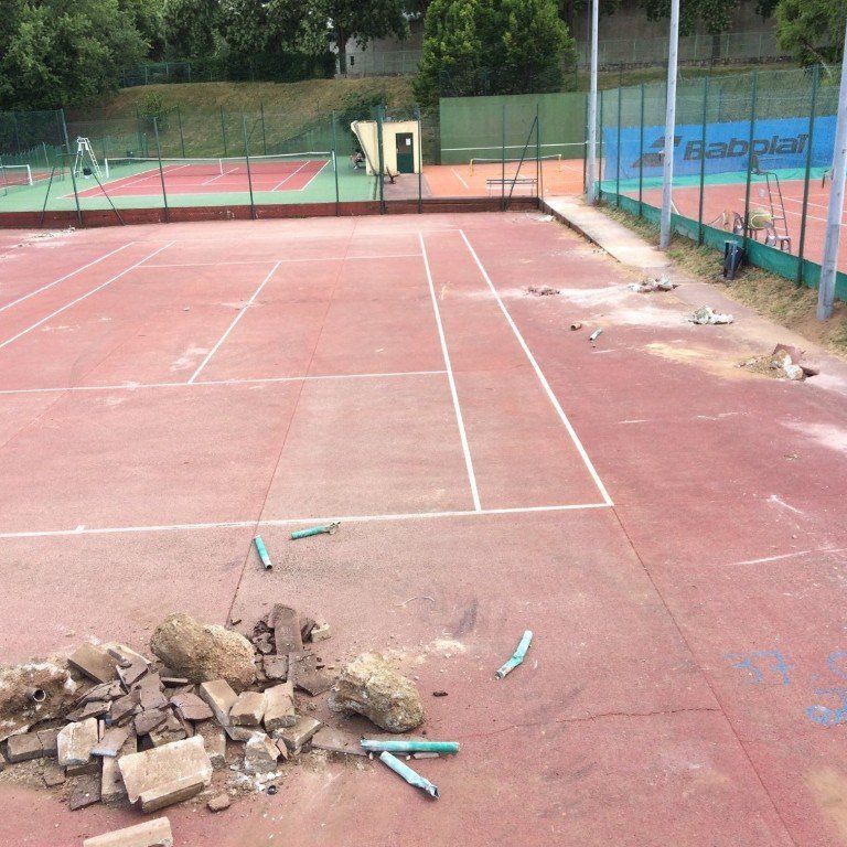 : Rénovation du court 6 en béton poreux.